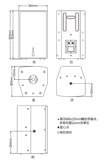 扬声器配置 12寸中低频扬声器,1寸喉口输出38mm音圈高频扬声器,配恒指向性可旋转号角